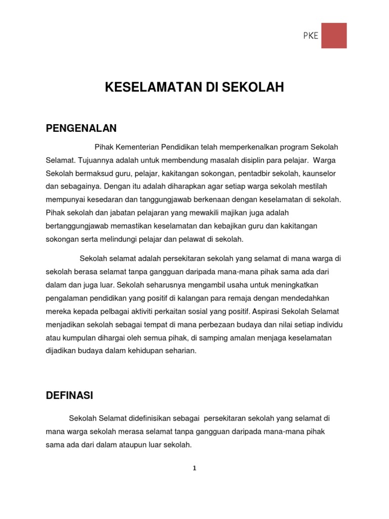 Mengenalpasti menilai dan mengawal bahaya di tempat kerja. Sila huraikan definisi konsep dan kepentingan dalam. 211 Masalah keselamatan pelajar sekolah semakin serius hari ini apabila meningkatnya.
